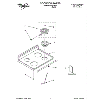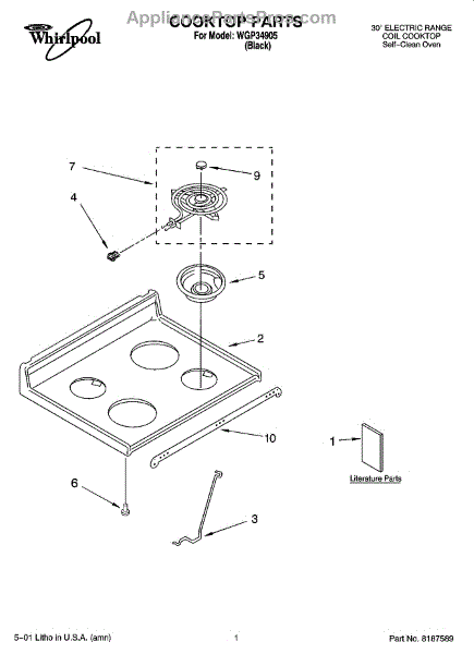 Parts for Whirlpool WGP34905: 01 - Cooktop Parts