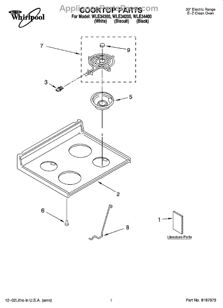 Parts for Whirlpool WLE34400: 01 - Cooktop Parts