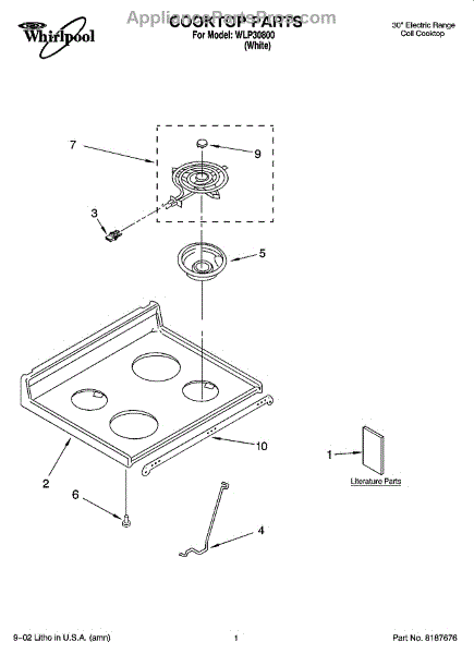 Parts for Whirlpool WLP30800: 01 - Cooktop Parts