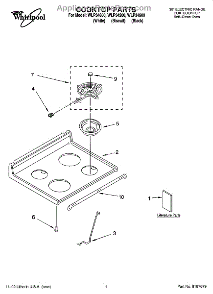 Parts for Whirlpool WLP34800: 01 - Cooktop Parts