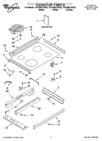 Parts for Whirlpool YGY396LXPS02: 01 - Cooktop Parts