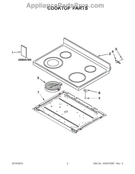 The Cooktop is an OEM part for Whirlpool ranges. This part serves as the cooking surface where pots and pans are placed for heating and cooking.