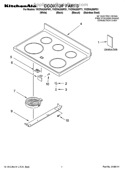 Parts for Whirlpool YKERA205PS1: 01 - Cooktop Parts