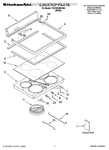 Parts for Whirlpool YKERC500HW4: 01 - Cooktop Parts