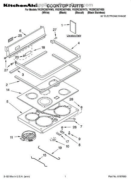 Parts for Whirlpool YKERC507HT5: 01 - Cooktop Parts