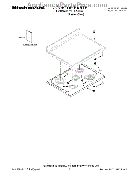 Parts for Whirlpool YKERS205TS5: 01 - Cooktop Parts