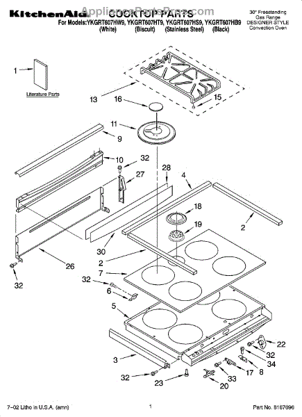 Parts for Whirlpool YKGRT607HS9: 01 - Cooktop Parts