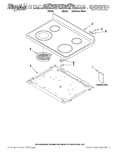 The Cooktop is an OEM part for Whirlpool ranges. This part serves as the cooking surface where pots and pans are placed for heating and cooking.