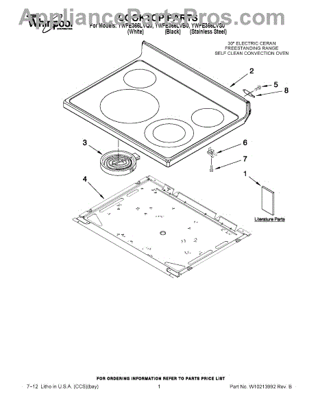 Parts for Whirlpool YWFE366LVB0: 01 - Cooktop Parts