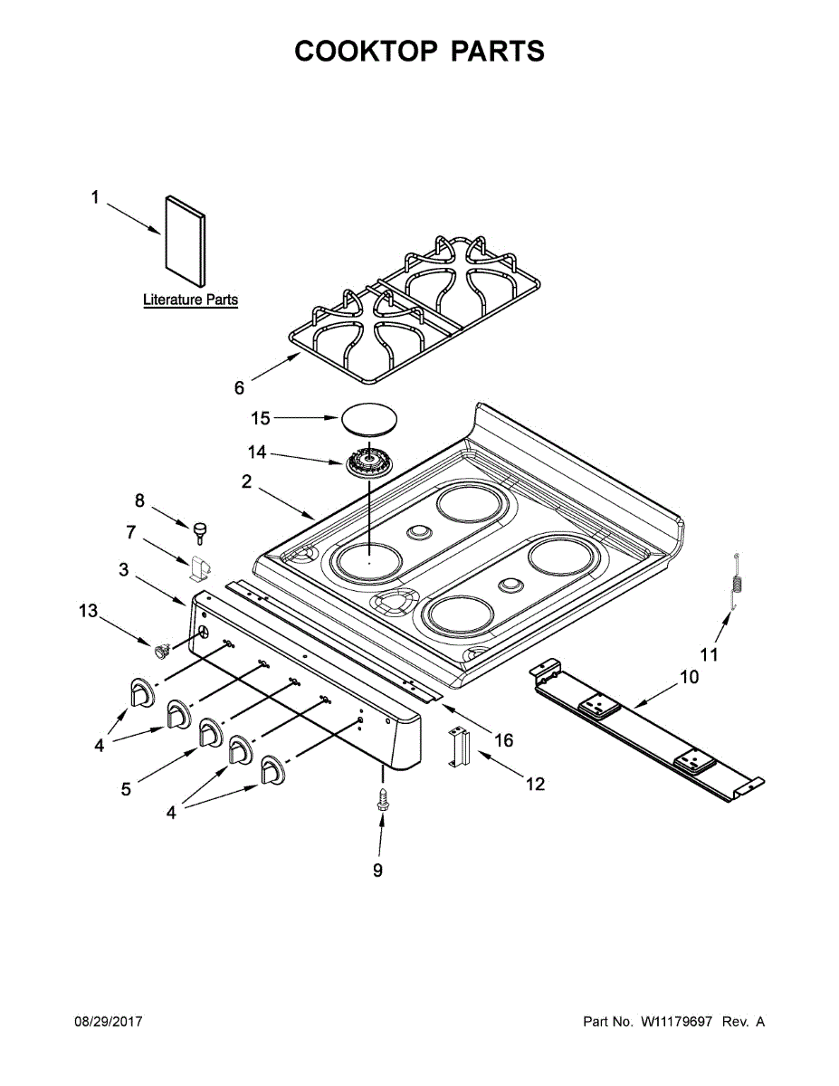 This burner head sits on the cooktop and channels gas through precision ports to produce an even flame. Replacing a worn or clogged head restores quick ignition and consistent heat across the burner.