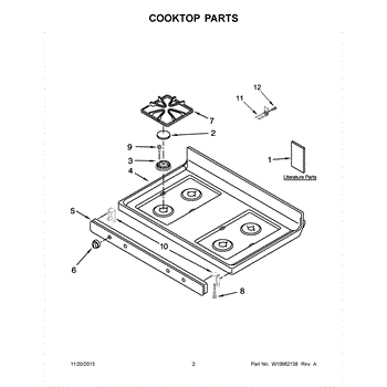 White metal cooktop panel that covers the top of your gas range. Replace if cracked, chipped, stained, or showing wear from years of cooking use.