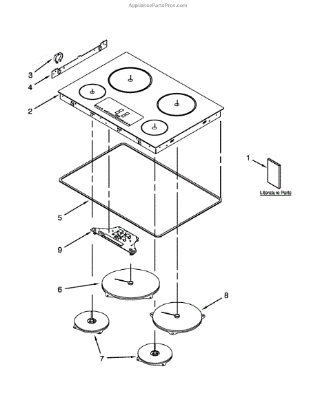 Replacement glass surface for electric cooktops. Install this part when the original cooktop glass is cracked, chipped, or broken. Direct fit.