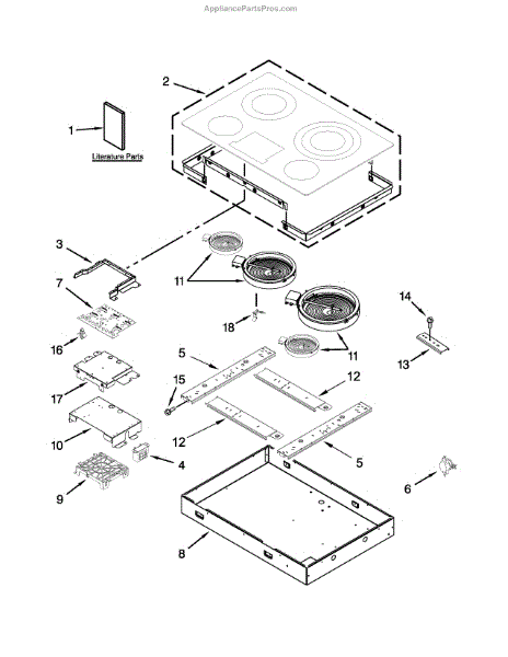 The COOKTOP (White) is an OEM part for Whirlpool electric ranges. As the surface that accommodates pots, pans, and cookware, the cooktop is responsible for safely and effectively heating food through its electric coil elements or smooth glass surface.