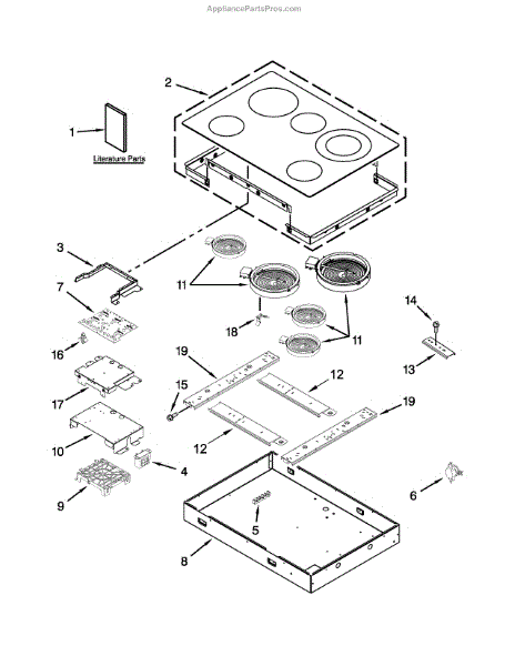 This is a Whirlpool cooktop control board. It manages and monitors burner temperatures. The control board can short out due to power surge or exposure to excessive heat. If the user interface is blank or not responding to input, the control board has likely shorted out.Before installing this part, be sure to cut power to the appliance and allow it to cool completely. The glass cooking surface must be removed to access the control board, and so it may be easier to complete this repair by removing the cooktop from the counter. Beneath the glass cooking surface, the control board is held in place by mounting studs, which can be removed with needle nose pliers. Disconnect any wire harnesses connected to it and remove any screws mounting it in place before installing the new part.This is a genuine OEM part compatible with cooktops manufactured by Jenn-Air, but may also work with other Whirlpool brands, including Maytag, KitchenAid, Amana, Magic Chef, Admiral, Norge, Roper, and others. This product contains no additional parts or hardware.