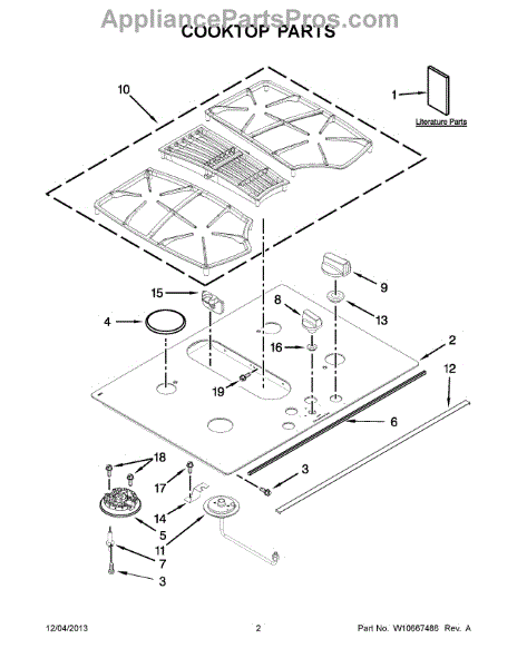 The Knob is an OEM part for Whirlpool cooktops. It is used to control the heat level of the burners on the cooktop, allowing you to adjust the flame or heat intensity for cooking.