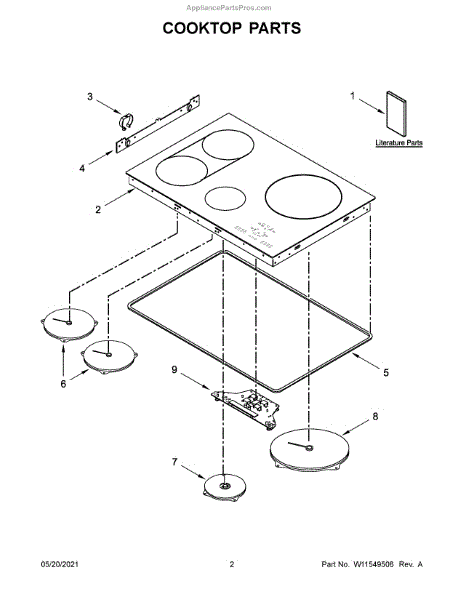 This cooktop top surface replaces a damaged or worn range surface to restore a smooth, stable cooking area and improve appearance. It provides the main work surface for burners and pans. What it does: