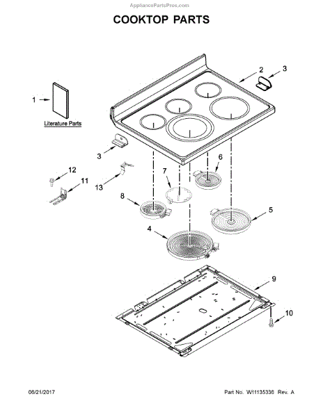 This genuine cooktop surface replaces a damaged or worn top to restore a safe, usable cooking area. Fits the original cooktop opening and provides a clean, stable surface for burners and cookware. What it does