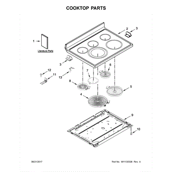 This cooktop surface is the top panel that provides the smooth, finished cooking area and supports burners and controls. It restores the cooktop's appearance and functional mounting for heating elements. What it does: