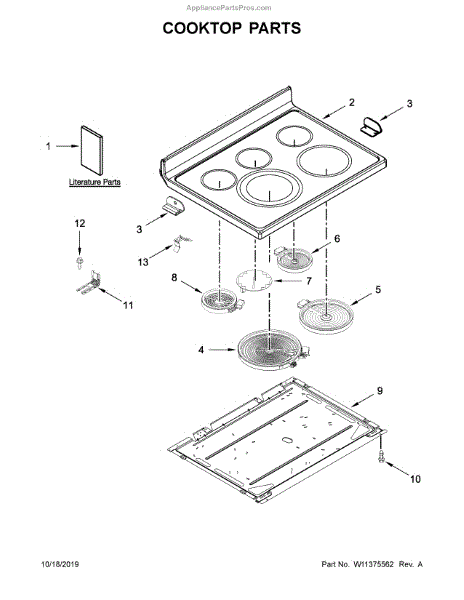 This is a radiant surface heating element for smooth-top electric ranges. It replaces a failed burner to restore up to 1300 watts of even heat and dependable temperature control under the glass-ceramic cooktop. What it does:
