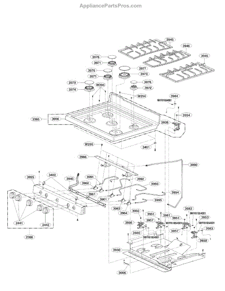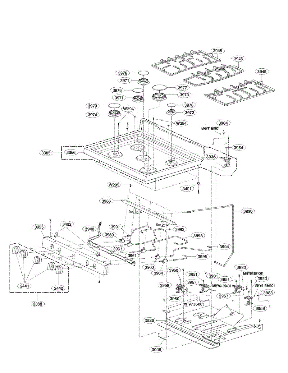 Grille assembly for gas ranges. Covers the cooking surface and supports grates. Replace if warped, bent, cracked, or broken to restore proper pan placement.