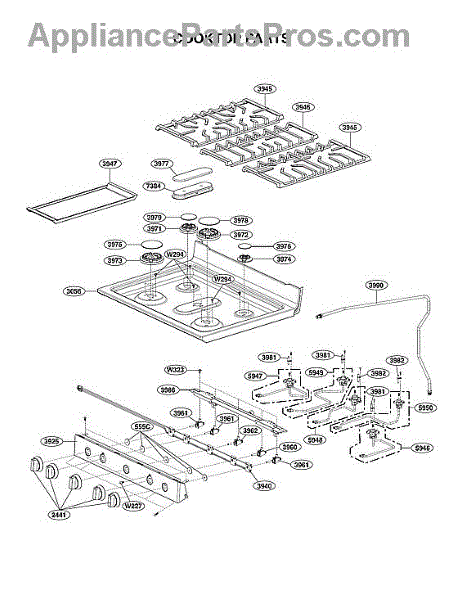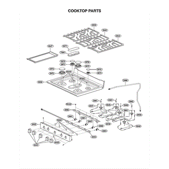 The Grille Assembly is an OEM part for LG gas ranges. It protects burner components while allowing heat to radiate from the cooktop. This heavy-duty assembly features precisely centered cutouts aligned with each gas burner.