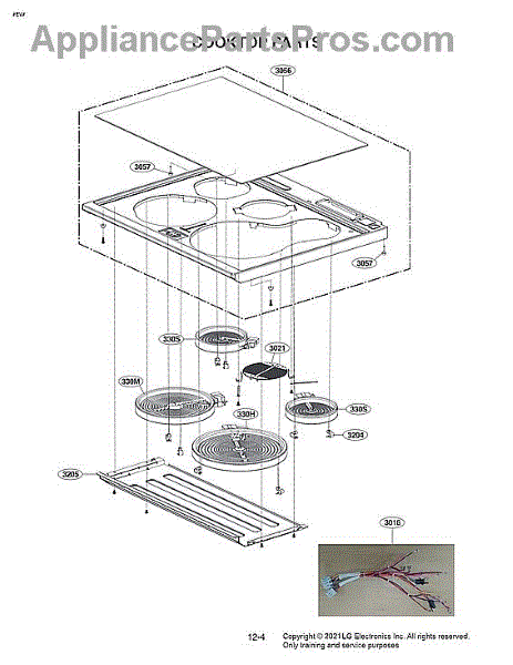 This Radiant Surface Element is an OEM replacement part for LG electric ranges and cooktops. It is a high-power coil heating unit located below the cooktop surface that provides efficient, customizable heat for various cooking needs. Causes of failure can be wear and damage to coiled filaments from prolonged heating cycles, cracking of ceramic insulators, or loose wiring connections suffering arcing or resistance over time. Symptoms of a faulty element include: