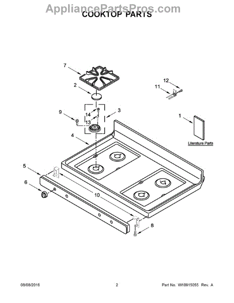 White metal cooktop panel that covers the top of your gas range. Replace if cracked, chipped, stained, or showing wear from years of cooking use.
