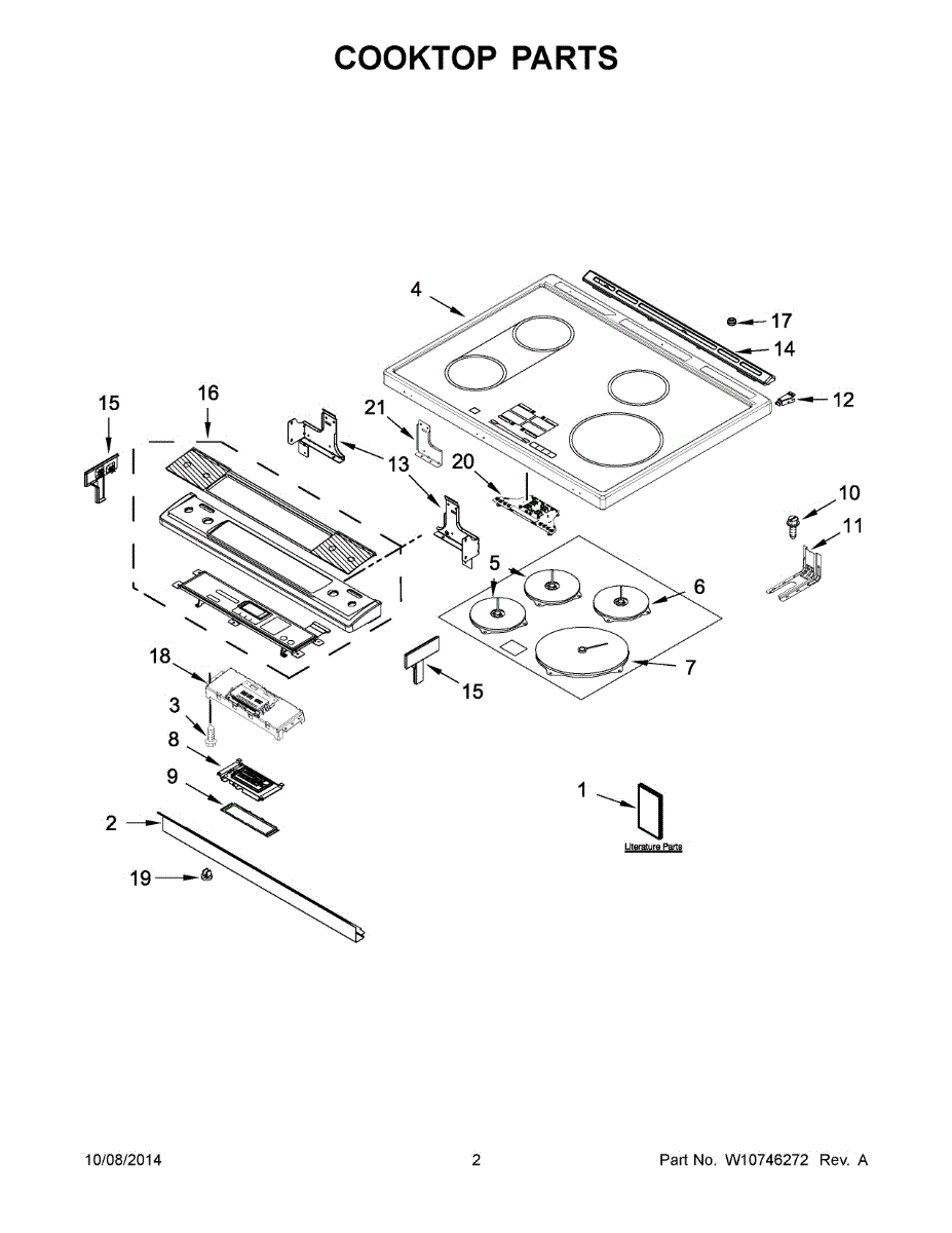 This glass top cooktop assembly replaces a cracked or damaged cooktop surface to restore a smooth cooking area and improve safety and heat distribution. It matches the original OEM fit for compatible Whirlpool cooktops. What it does: