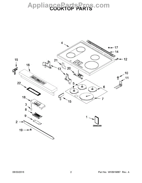 This glass top cooktop assembly replaces a cracked or damaged cooktop surface to restore a smooth cooking area and improve safety and heat distribution. It matches the original OEM fit for compatible Whirlpool cooktops. What it does: