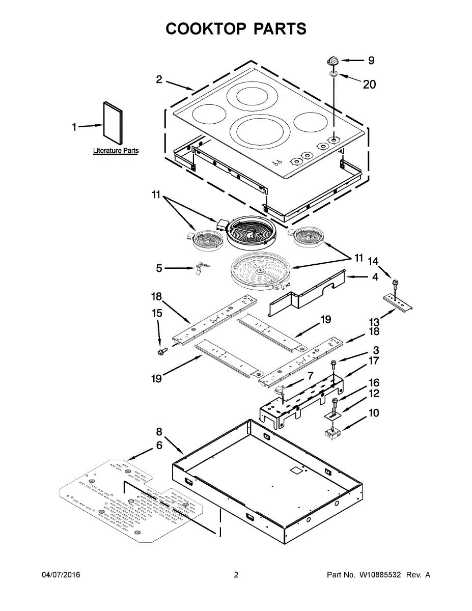 This is the cooktop surface — the main glass/metal top that covers the burner area and provides a finished cooking surface. It restores a smooth, secure cooking area and keeps burners and components protected. What it does