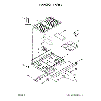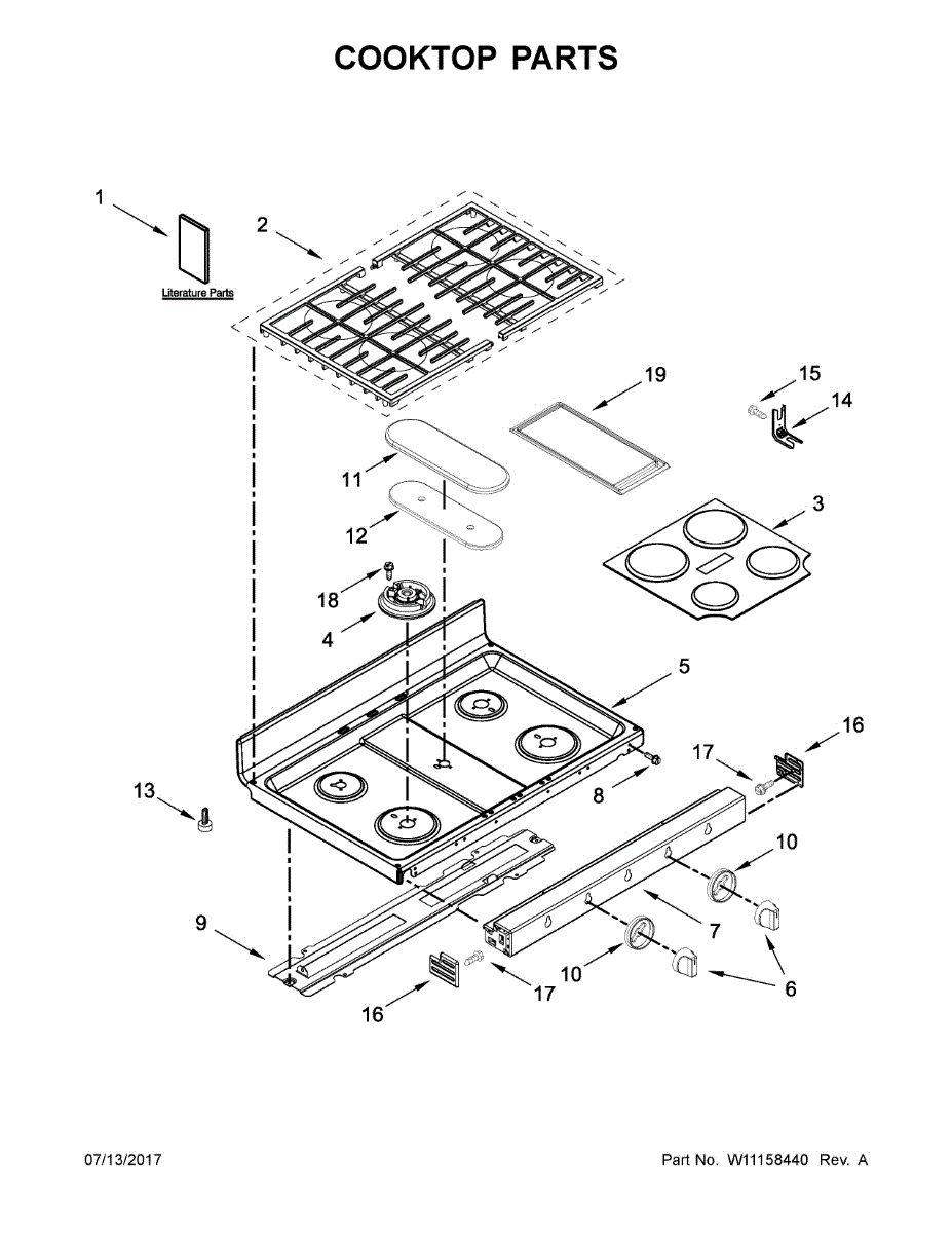 Black metal main top for gas ranges. Replaces scratched, stained, or damaged cooktop surfaces. Restores the appearance of your range's cooking area.
