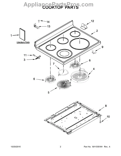 This surface heating element replaces a broken or worn top burner to restore electric range cooking performance. It provides a direct-replacement heating coil for compatible Whirlpool-style cooktops and matches OEM fit and function. What it does: