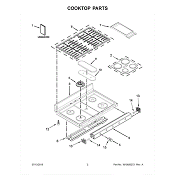 Parts for Whirlpool KFGD500EBL01: 02 - Cooktop Parts