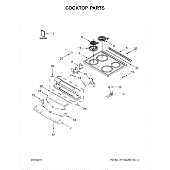 The Coil Surface Element is a 6-inch OEM part for Whirlpool ranges. It is responsible for radiating heat from its coils to cook food positioned above the stovetop grates.