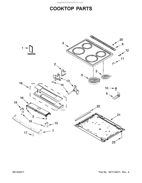 The Cooktop is an OEM part for Whirlpool ranges. The cooktop sits atop the oven, housing the surface elements responsible for cooking and heating meals.