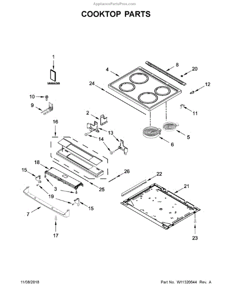 The Cooktop is an OEM part for Whirlpool ranges. The cooktop sits atop the oven, housing the surface elements responsible for cooking and heating meals.