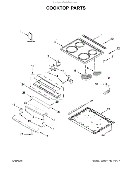 The Cooktop is an OEM part for Whirlpool ranges. The cooktop sits atop the oven, housing the surface elements responsible for cooking and heating meals.