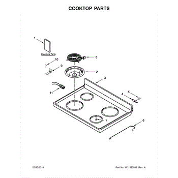 The Coil Surface Element is a 6-inch OEM part for Whirlpool ranges. It is responsible for radiating heat from its coils to cook food positioned above the stovetop grates.