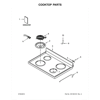 The Coil Surface Element is a 6-inch OEM part for Whirlpool ranges. It is responsible for radiating heat from its coils to cook food positioned above the stovetop grates.
