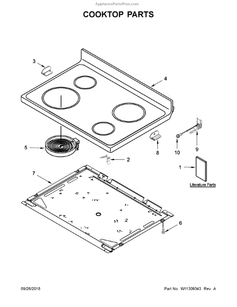 The Cooktop is an OEM part for Whirlpool ranges. This part serves as the cooking surface where pots and pans are placed for heating and cooking.