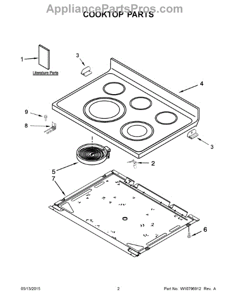 Parts for Whirlpool WFE540H0EH0: 02 - Cooktop Parts