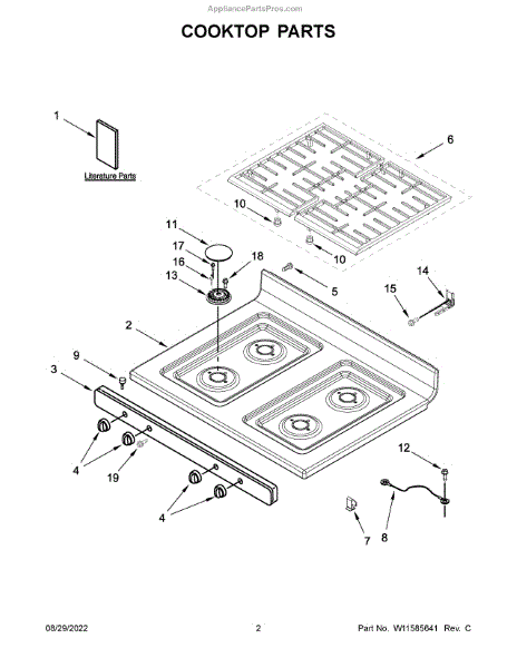 This top replacement restores the cooktop's exterior and burner openings on compatible 4-burner ranges, giving a clean, solid surface for burners and cookware. Designed to match OEM fit and finish for straightforward replacement. What it does: