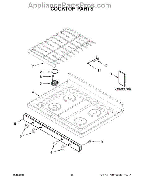 Replace your gas range's cooktop surface if cracked, chipped, stained, or damaged. This porcelain-enamel cooking surface installs on top of your range.