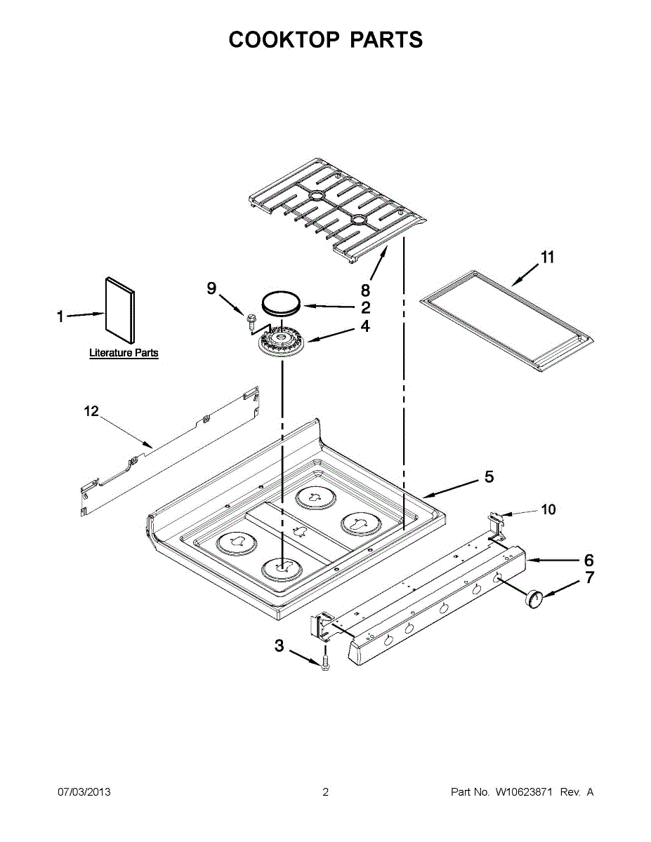 Black glass cooktop surface for gas ranges. Replace if cracked, scratched, burned, or damaged. Installs as the main cooking surface. Hardware sold separately.