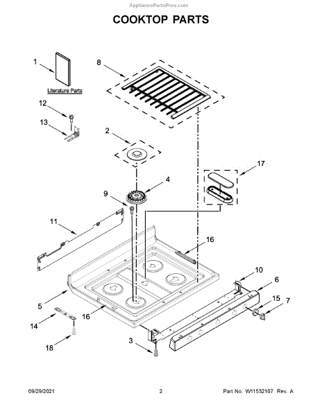 Replace cracked or damaged cooktop grates that cause unstable pots and uneven cooking. This grate kit restores a stable, level surface for safer cooking.