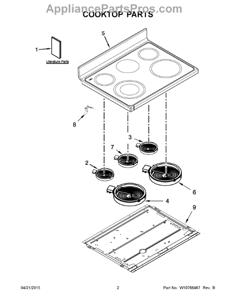 White cooktop panel for your range. Replace a cracked, chipped, stained, or discolored cooktop surface. Restores the appearance of your stovetop.