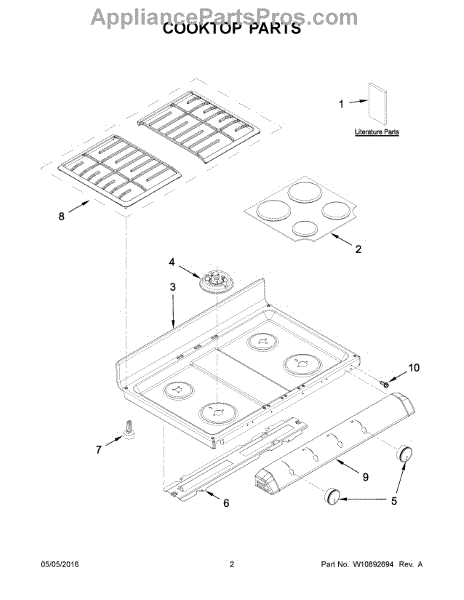Replace cracked, chipped, or worn range grates with this grate kit. Installs on top of burners to support cookware. Ideal when existing grates are damaged.