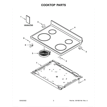The Cooktop is an OEM part for Whirlpool ranges. This part serves as the cooking surface where pots and pans are placed for heating and cooking.