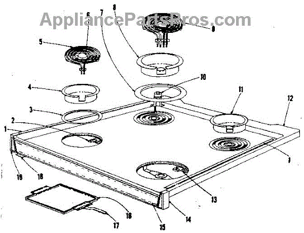 Parts for Kenmore 101.9686641 (1019686641, 101 9686641): Cooktop Section Parts