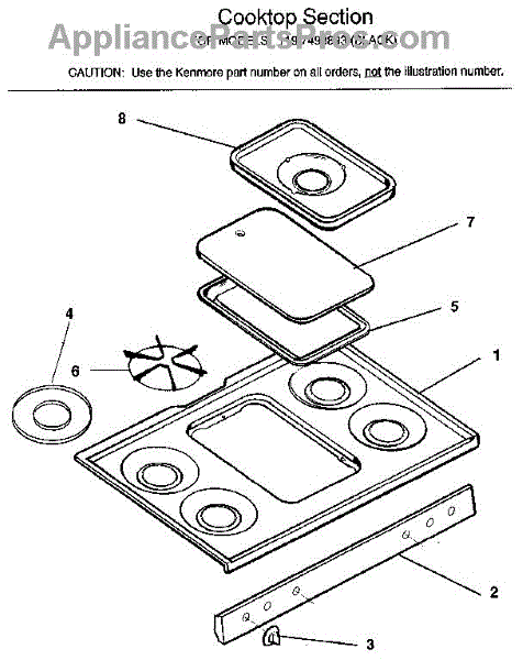 Parts for Kenmore 119.7498893 (1197498893, 119 7498893): Cooktop Section Parts